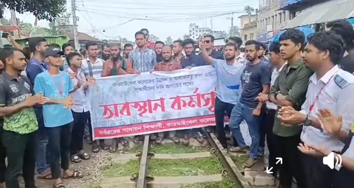 ২১ দফা দাবিতে কারমাইকেল কলেজ শিক্ষার্থীদের রেলগেট ও সড়ক পথ অবরোধ