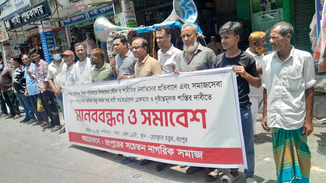 শিশু পুনর্বাসন কেন্দ্রের নিখোঁজ দুই কিশোরী কে উদ্ধা ও জড়িতদের শাস্তির দাবিতে মানববন্ধন