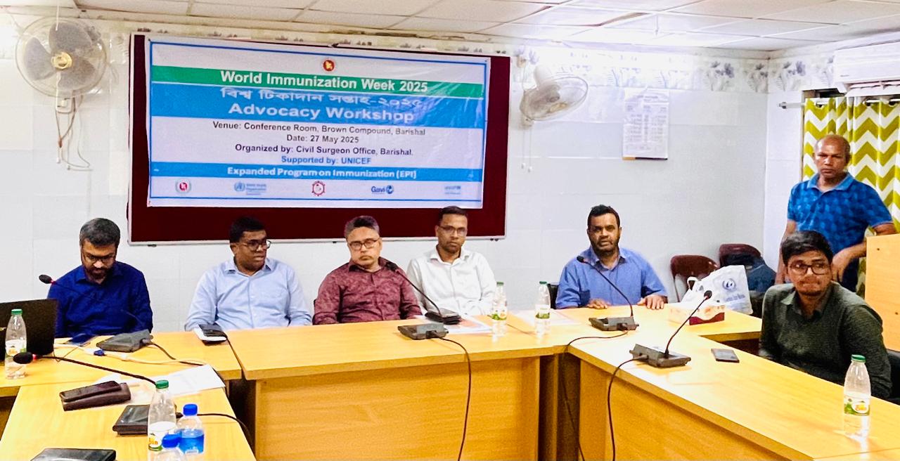 বরিশালে বিশ্ব টিকাদান সপ্তাহ-২০২৫ উপলক্ষে অ্যাডভোকেসি সভা অনুষ্ঠিত হয়েছে। গতকাল মঙ্গলবার (২৭ মে) বেলা ২ টায় বরিশাল নগরীর ব্রাউন কম্পাউন্ড
