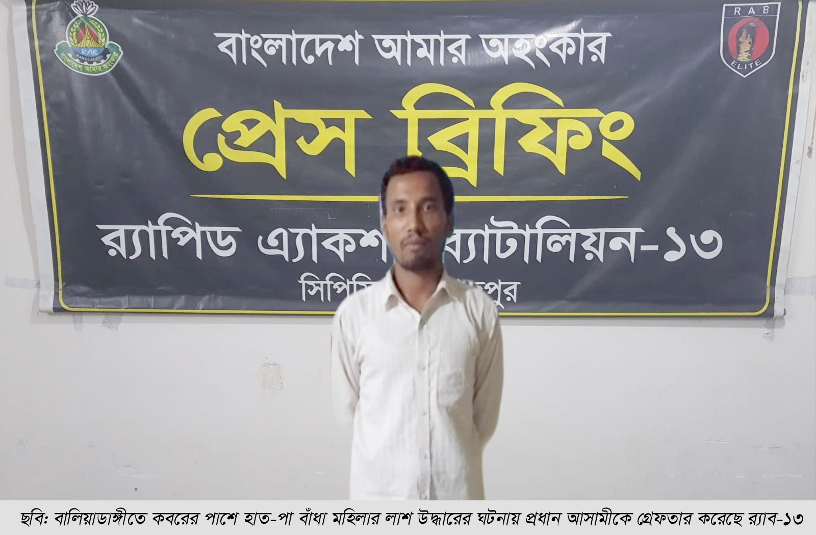 ঠাকুরগাঁওয়ের বালিয়াডাঙ্গী থানার চাঞ্চল্যকর কবরের পাশে হাত-পা বাঁধা মহিলার লাশ উদ্ধারের ঘটনায় র্যাব-১৩ অভিযান চালিয়ে প্রধান আসামী তাজমুল হককে গ্রেফতার