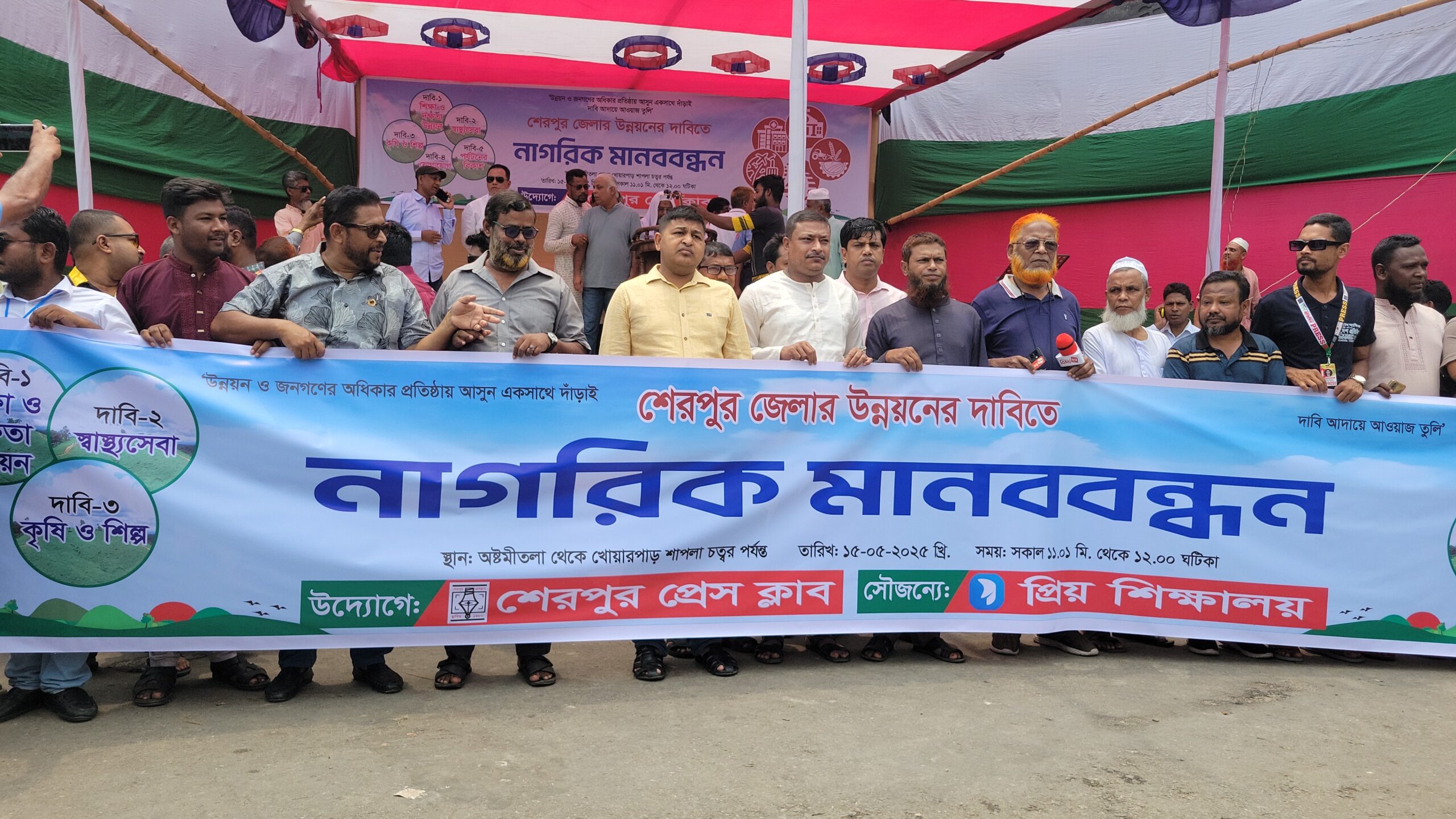 শেরপুরের উন্নয়নের দাবীতে মানববন্ধন অনুষ্ঠিত!