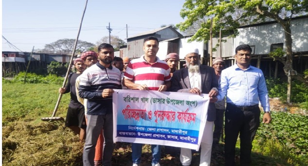 জেলা প্রশাসনের নির্দেশনা মোতাবেক বরিশাল খালের অন্তর্গত ডাসার উপজেলার অংশের খালগুলোর জলাবদ্ধতা নিরসনে খাল পরিস্কার ও অবৈধ স্থাপনা এক মাসের