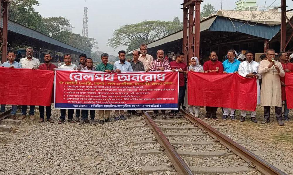 ব্রাহ্মণবাড়িয়ায় বিভিন্ন দাবীতে রেলপথ অবরোধ, আশ্বাস পাওয়ার পর স্থগিত