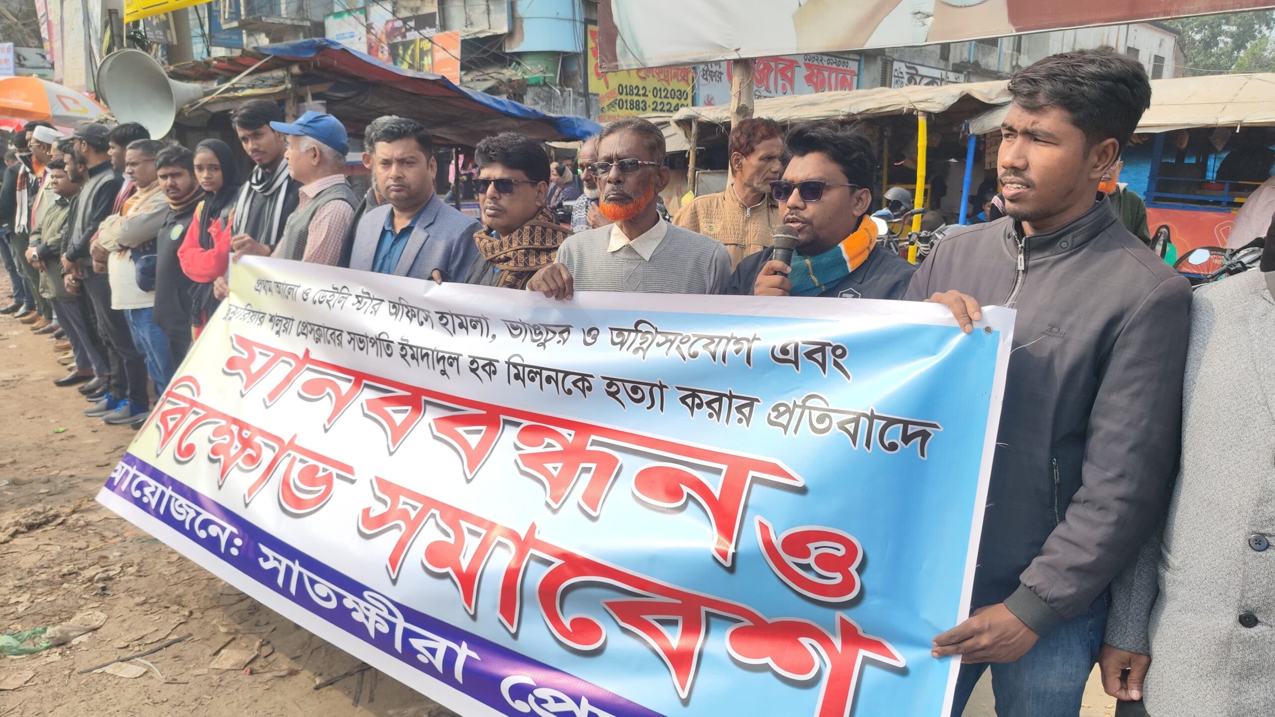 প্রথম আলো ও ডেইলি স্টারের কার্যালয়ে হামলা -অগ্নি সংযোগের প্রতিবাদে সাতক্ষীরায় মানববন্ধন