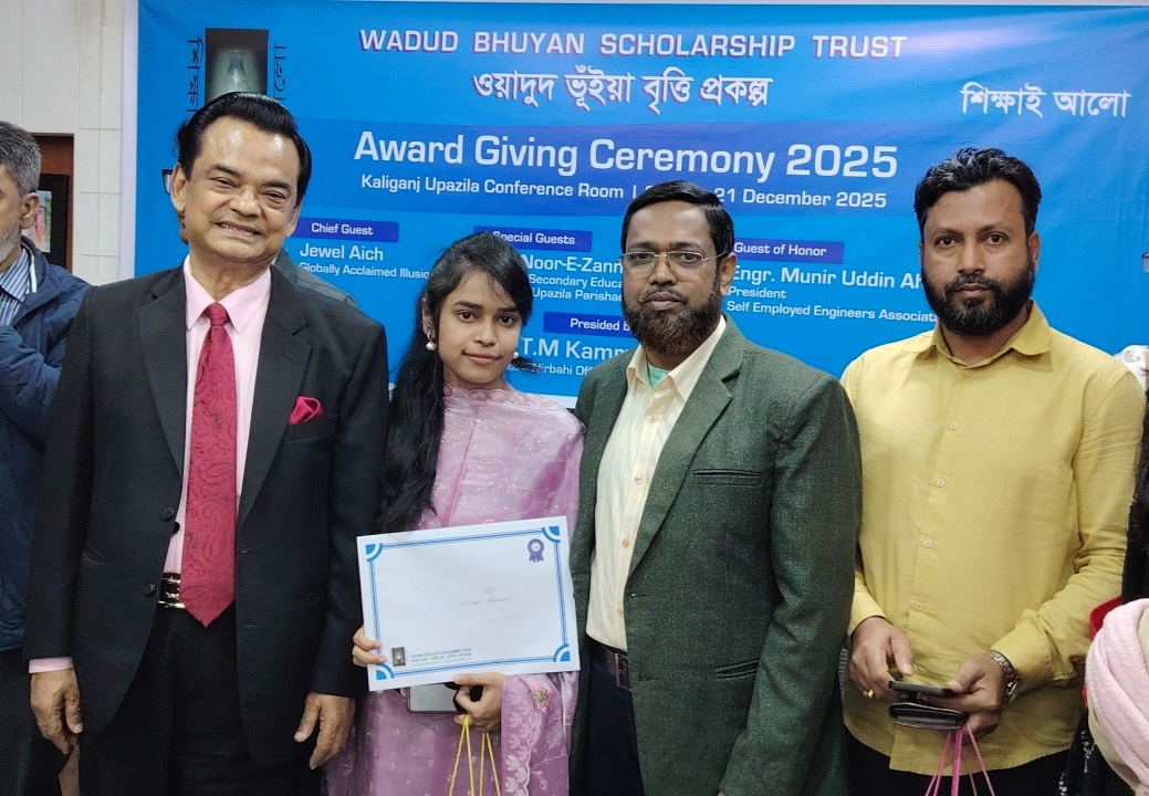 গাজীপুরের কালীগঞ্জ উপজেলায় ওয়াদুদ ভূঁইয়া বৃত্তি প্রকল্পের উদ্যোগে উপজেলার বিভিন্ন শিক্ষা প্রতিষ্ঠানের গোল্ডেন জিপিএ-৫ প্রাপ্ত ৫০ জন কৃতি শিক্ষার্থী ও