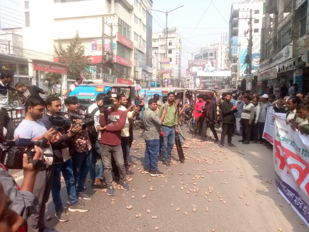 রংপুরে রাস্তায় চাষীরা আলু ফেলে বিক্ষোভ
