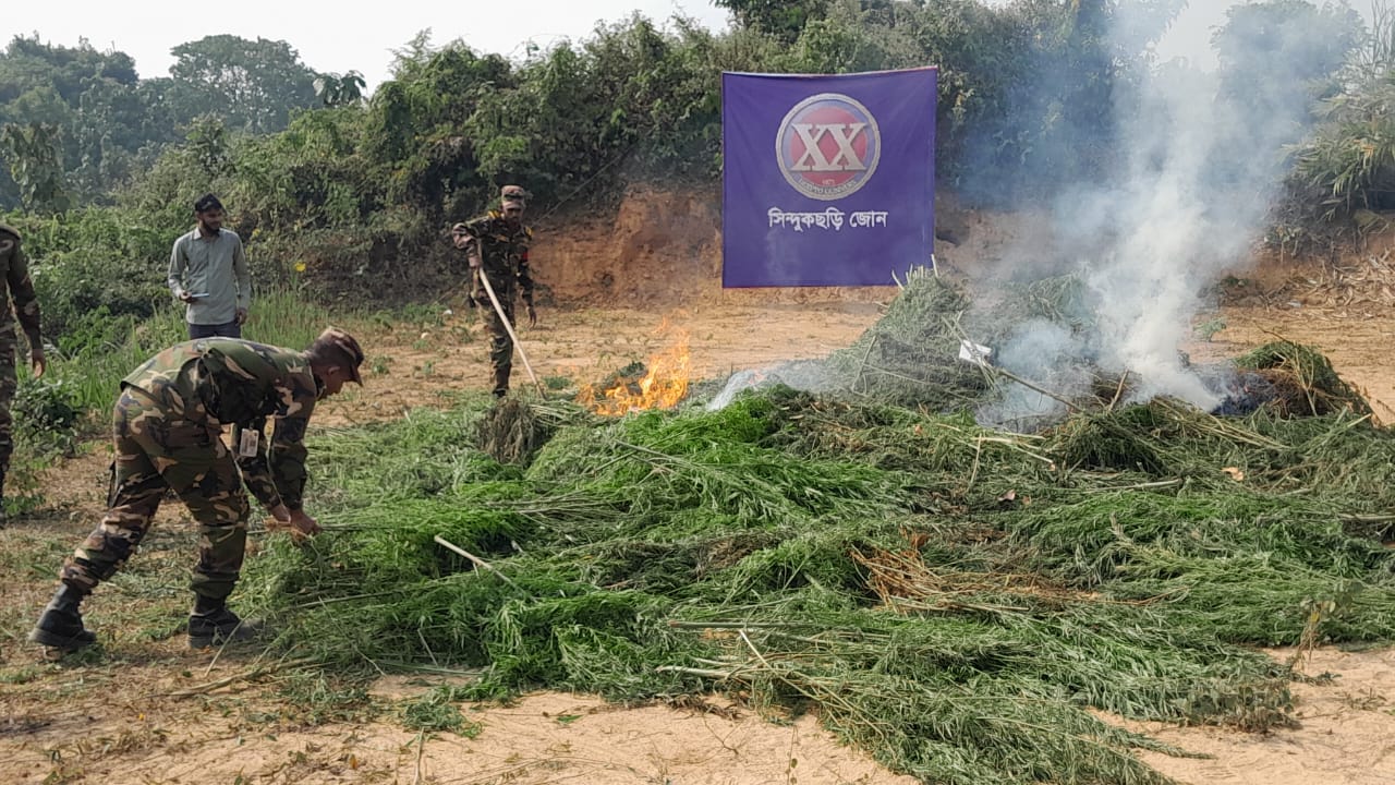গুইমারা সেনা বাহিনীর অভিযানে দুই একর জমির অর্ধ কোটি টাকার গাঁজা ধ্বংস