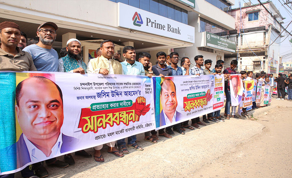 জসিম উদ্দিনের বিরুদ্ধে মিথ্যা ও বানোয়াট মামলা প্রত্যাহারের দাবিতে মানববন্ধন