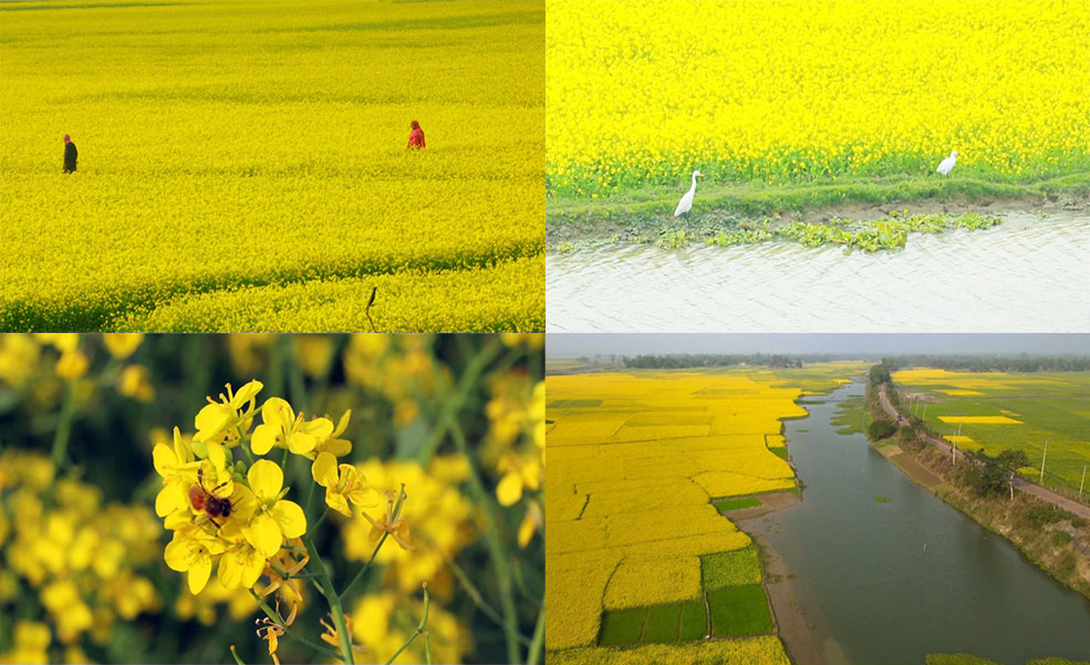 দিগন্ত বিস্তৃত হলুদের সমারোহে মৌমাছি আর হাজারো পাখির কলতান