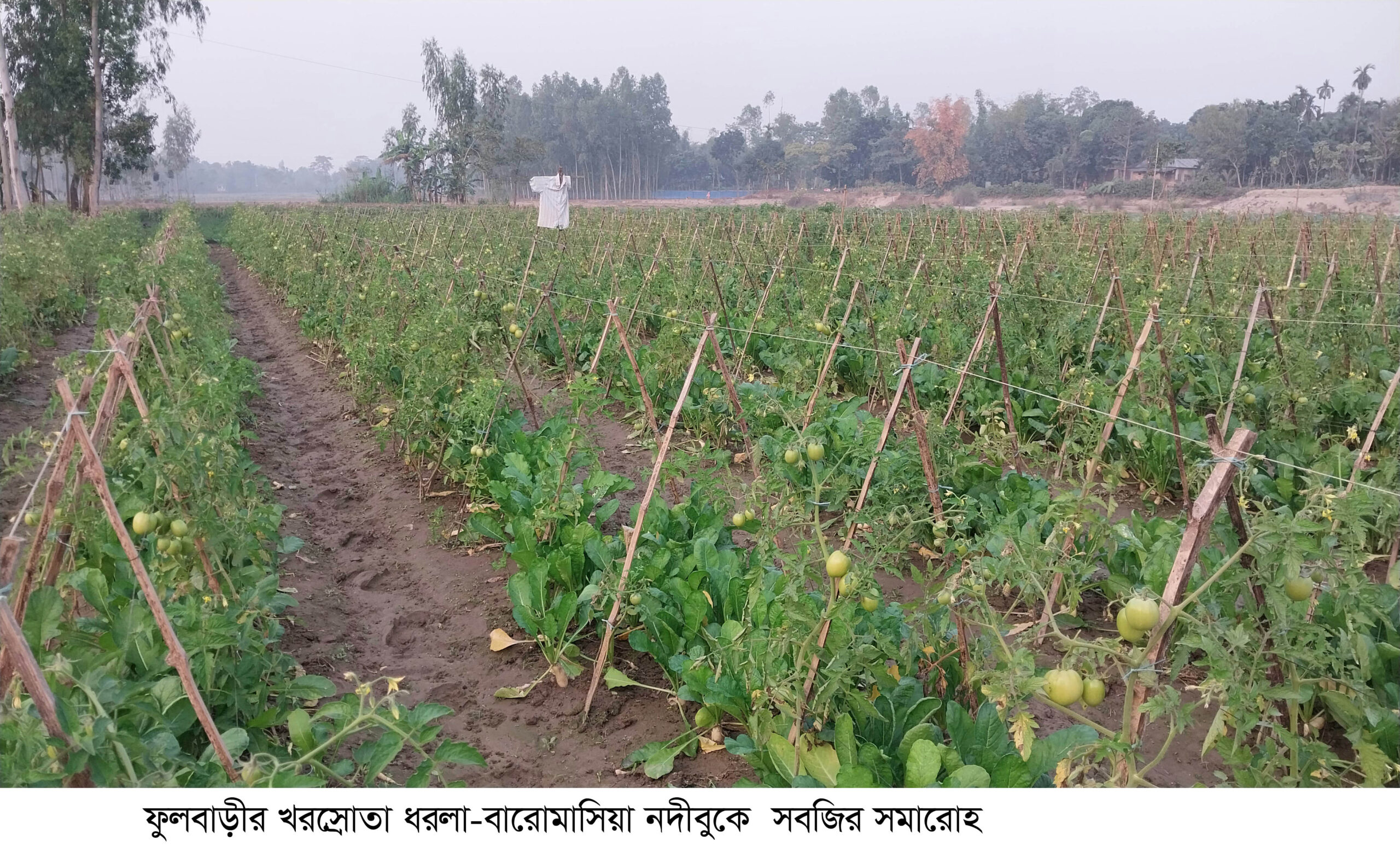 কুড়িগ্রামে খরস্রোতা ধরলা-বারোমাসিয়া নদীবুকে সবজির সমারোহ ফসল ফলায় কৃষক খুশি