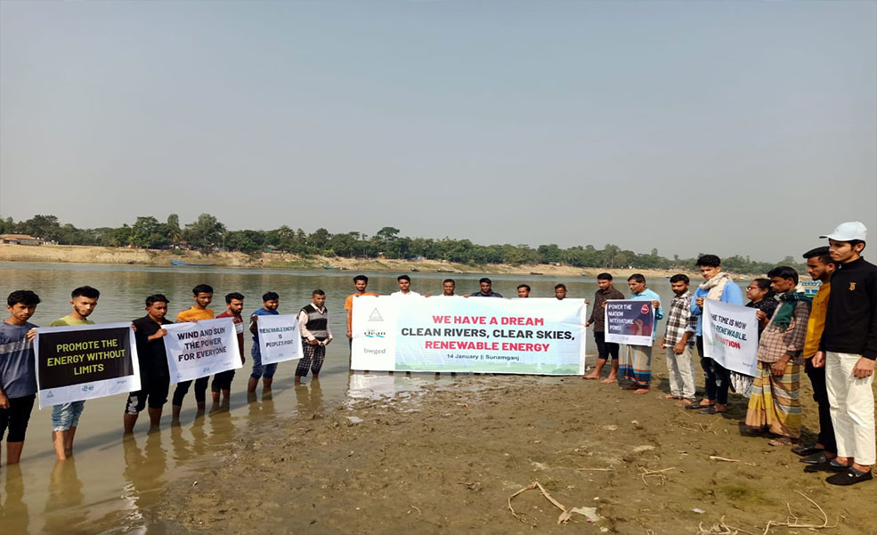 সুনামগঞ্জের নবীনগরে দেশের দীর্ঘতম নদী সুরমায় “জীবাশ্ম জ্বালানির পরিবর্তে নবায়নযোগ্য জ্বালানি নিয়ে স্বপ্ন দেখি” শীর্ষক একটি ক্যাম্পেইন অনুষ্ঠিত হয়। ১৪