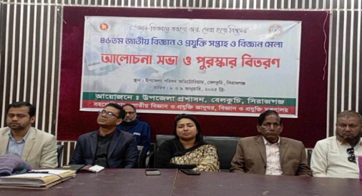 সিরাজগঞ্জের বেলকুচিতে ৪৬তম জাতীয় বিজ্ঞান প্রযুক্তি সপ্তাহ ও বিজ্ঞান মেলা উপলক্ষে আলোচনা ও পুরস্কার বিতরণ অনুষ্ঠিত হয়েছে। ৯ জানুয়ারি বিকেলে