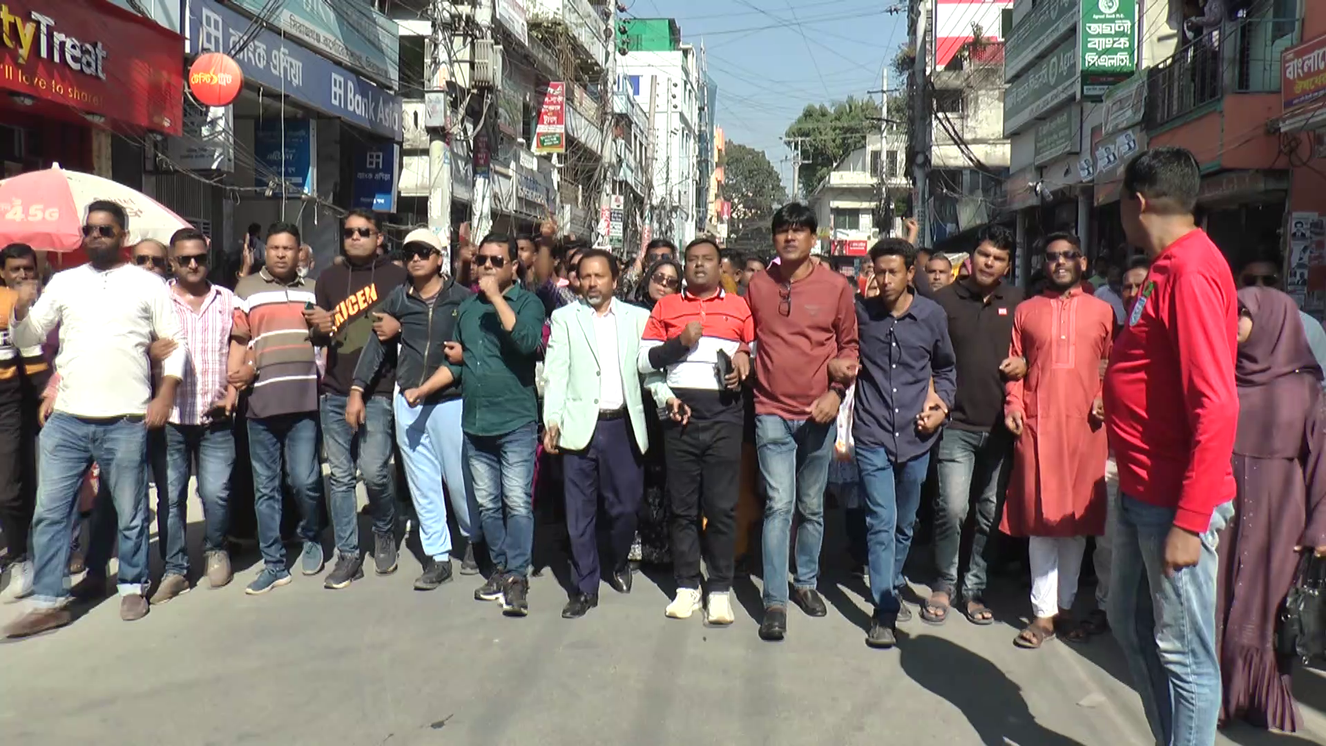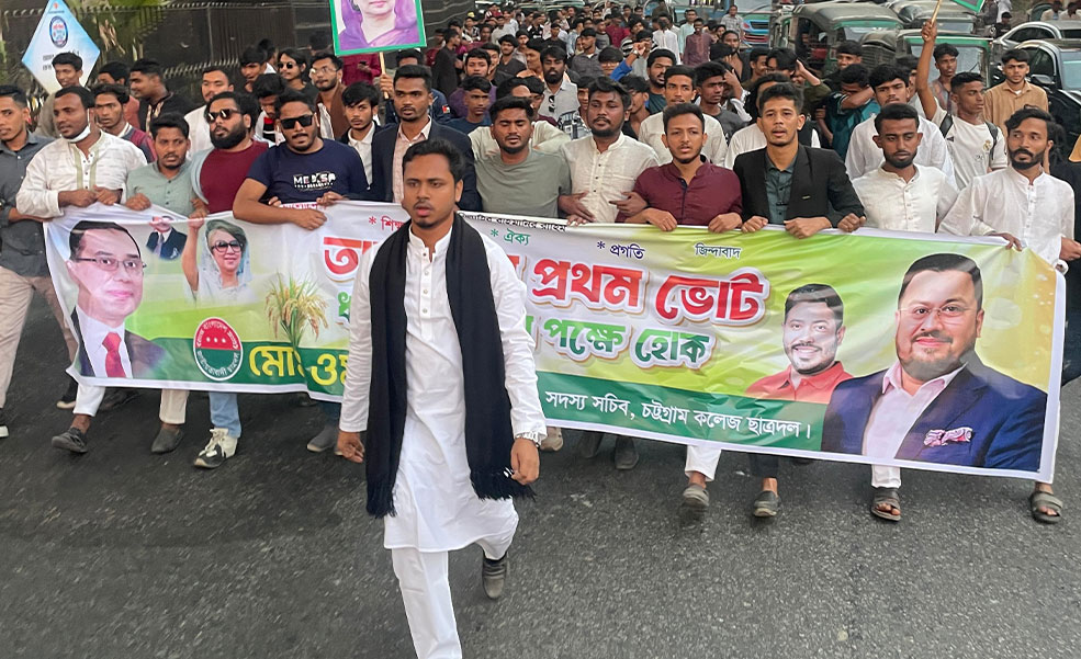 তফসিল ঘোষণাকে স্বাগত জানিয়ে এবং ঢাকা-৮ আসনের স্বতন্ত্র প্রার্থী শরিফ ওসমান হাদির ওপর হামলার তীব্র নিন্দা জানিয়ে বিক্ষোভ মিছিল করেছে