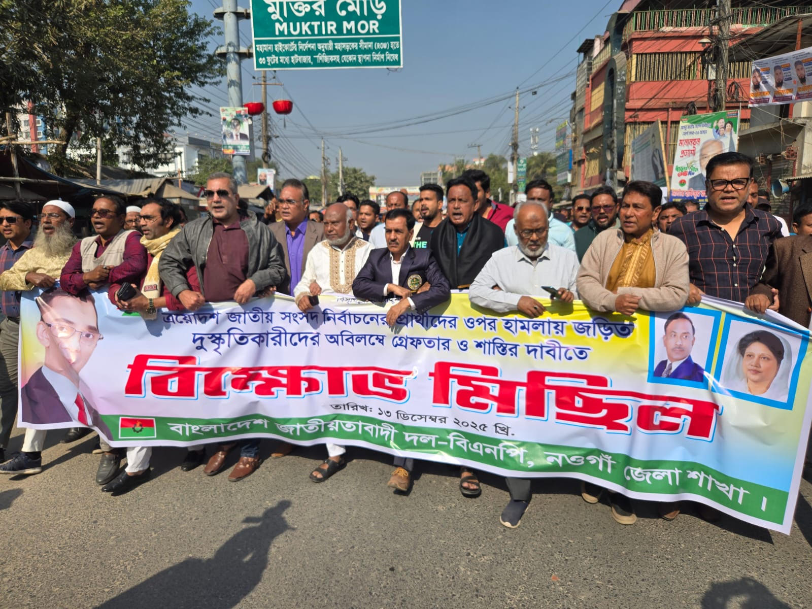 হাদির ওপর হামলার প্রতিবাদে নওগাঁয় রাজনৈতিক দলগুলোর বিক্ষোভ