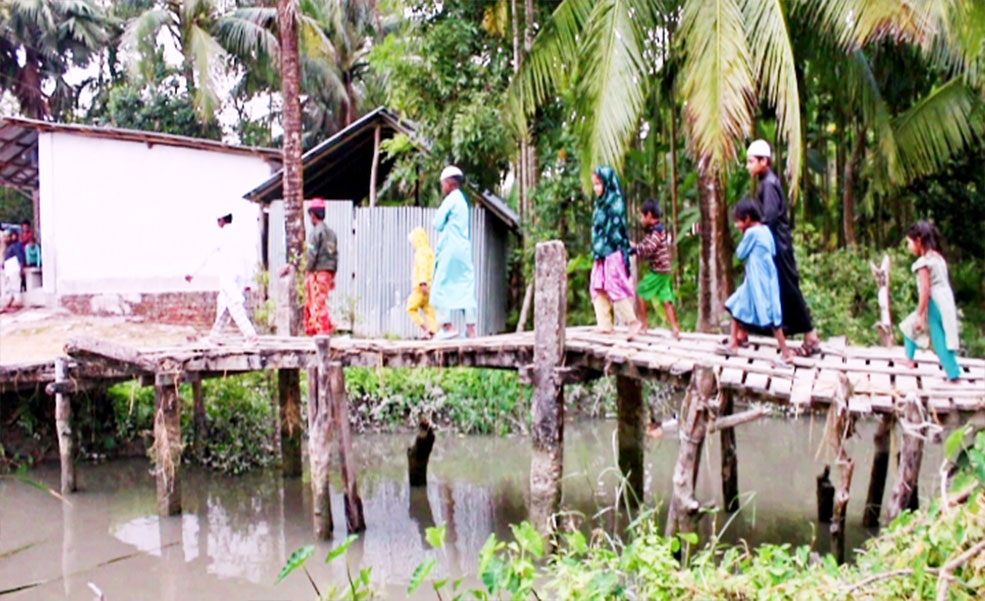 ব্রীজ না থাকায় দূর্ভোগে দুই গ্রামের মানুষ ও শিক্ষার্থীরা