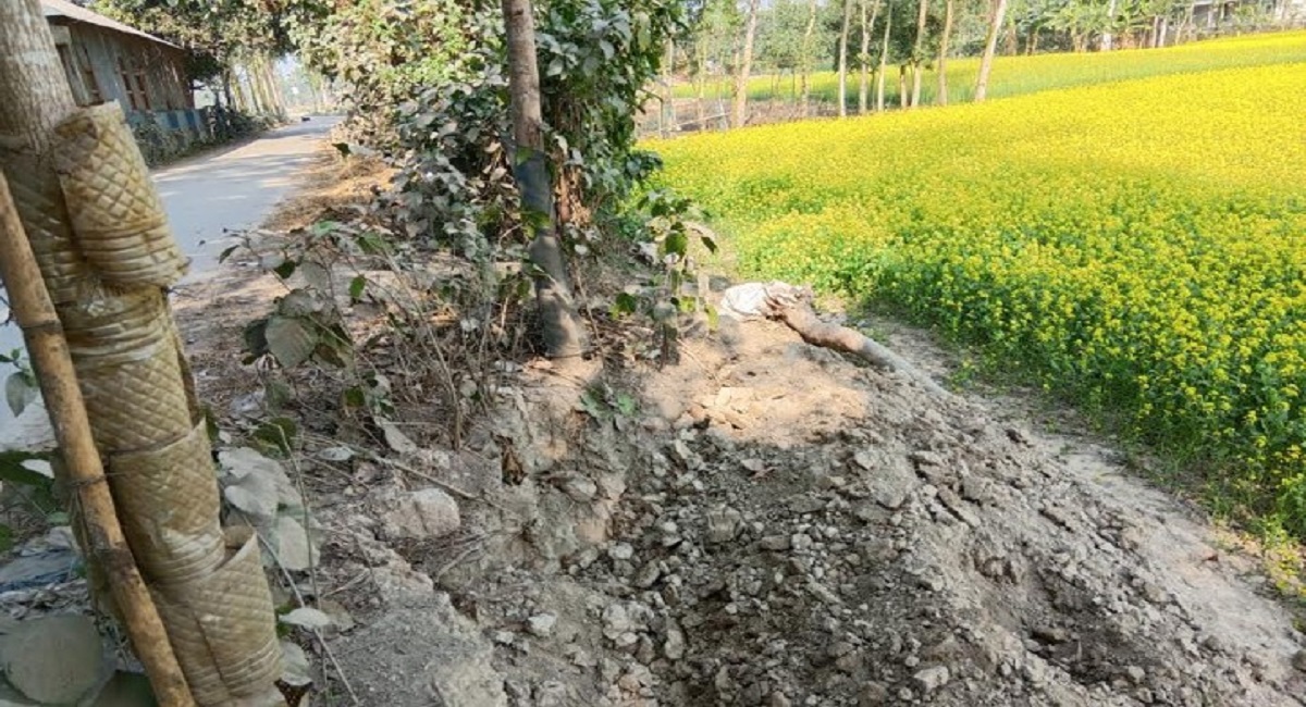 সরকারি পাকা রাস্তার গাছ ও মাটি কেটে নেওয়ার অভিযোগ