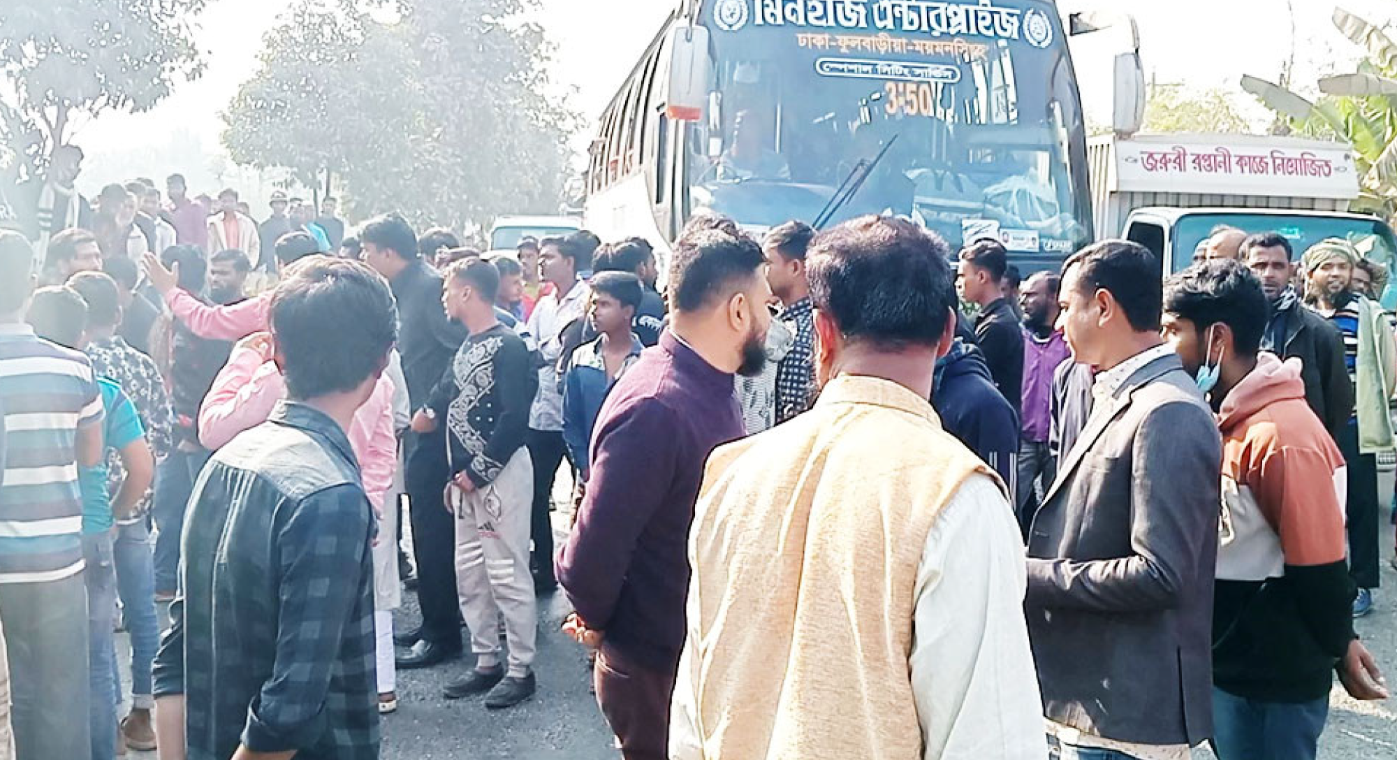 ভালুকায় বকেয়া বেতনের দাবিতে শ্রমিকদের মহাসড়ক অবরোধ