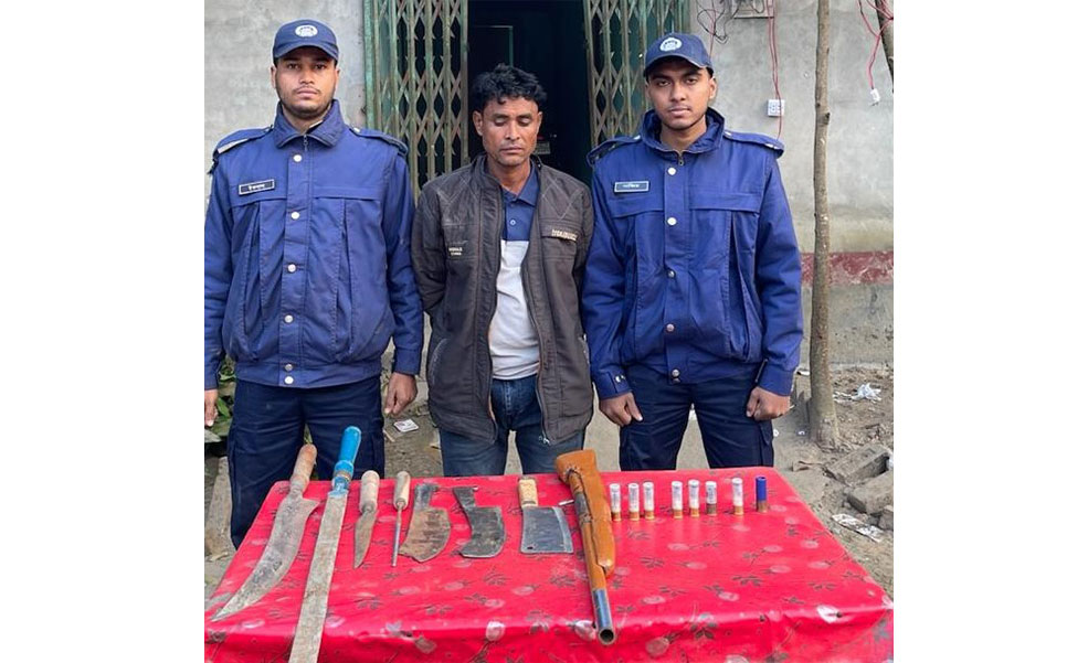 ব্রাহ্মণবাড়িয়ার নবীনগরে থানা পুলিশ বিশেষ অভিযান চালিয়ে একটি দেশীয় তৈরী এল জি,৮টি কার্তুজ,১ টি রামদা,৩ টি চাপাতি,২ টি ছুরি ও