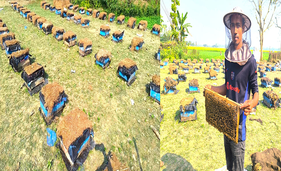 শাহজাদপুরে সরিষা ফুলের মধু সংগ্রহে ব্যস্ত মৌ চাষীরা