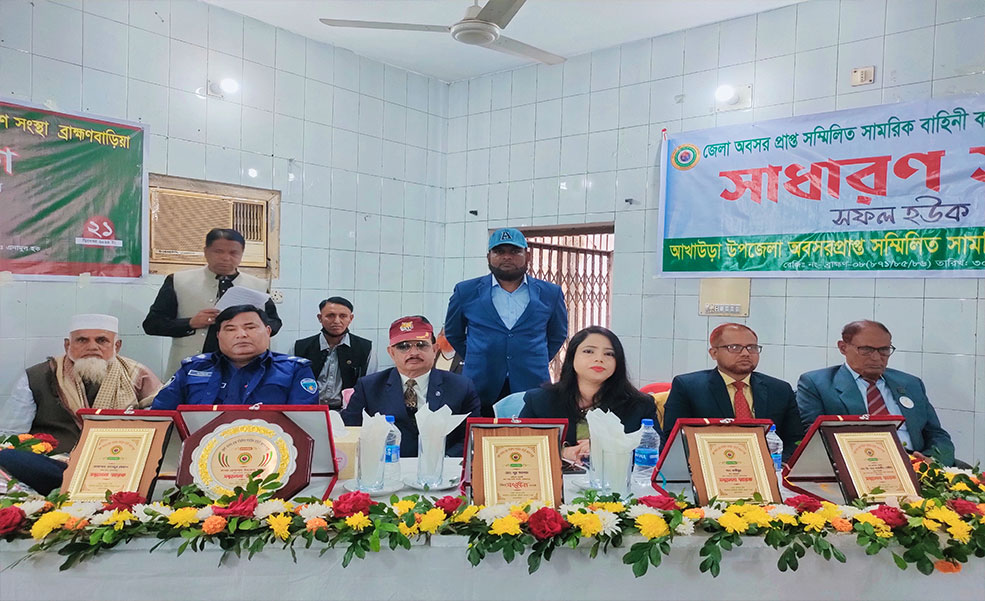 ব্রাহ্মণবাড়িয়া জেলার তিন বাহিনীর অবসরপ্রাপ্ত সৈনিকদের সমন্নয়ে গড়া সংগঠন “জেলা অবসরপ্রাপ্ত সম্মিলিত সামরিক বাহিনী কল্যাণ সংস্থার” আয়োজনে এক সাধারণ সভা