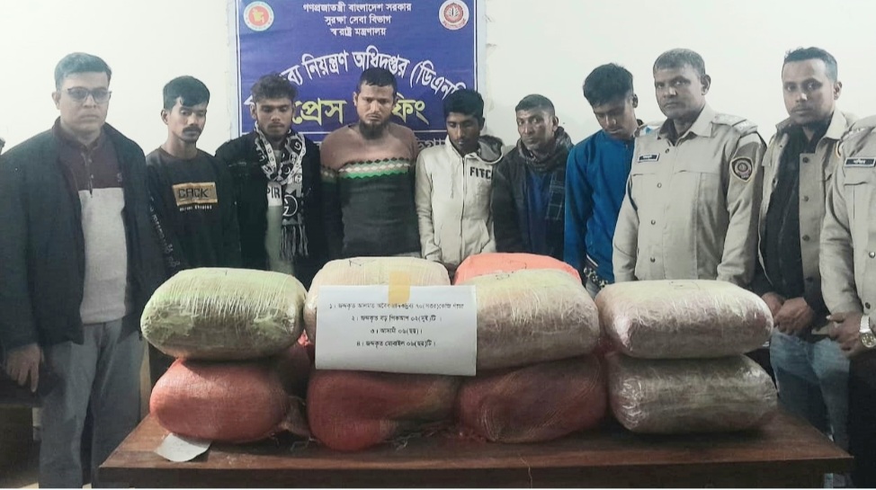 কুড়িগ্রামে পিকাপ ভ্যানে ১ মণ ৩০ কেজি গাঁজাসহ আটক ৬