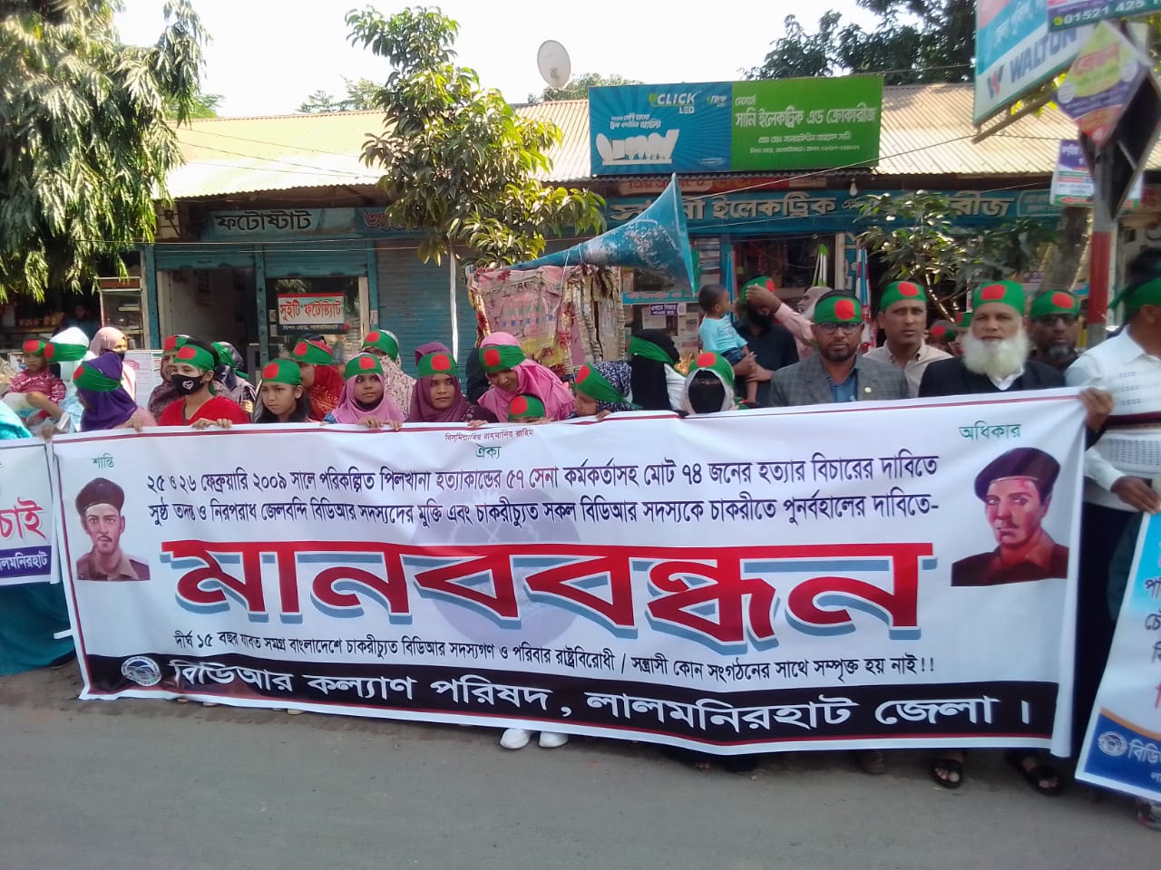 লালমনিরহাটে চাকরীচ্যুত সকল বিডিআর সদস্যকে চাকরীতে পুনর্বহালের দাবিতে মানববন্ধন