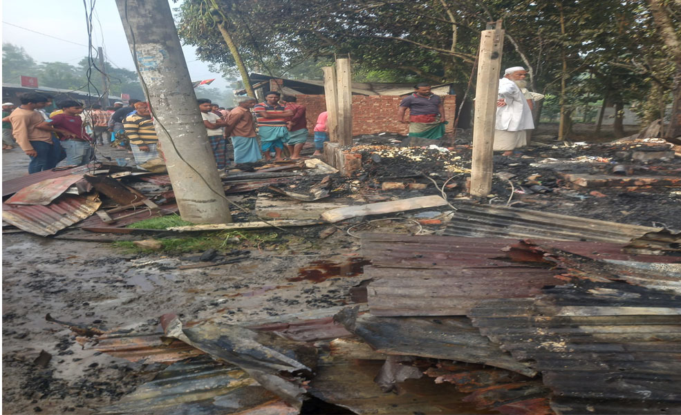 কোম্পানীগঞ্জে আগুনে ৯ দোকান পুড়ে ছাই