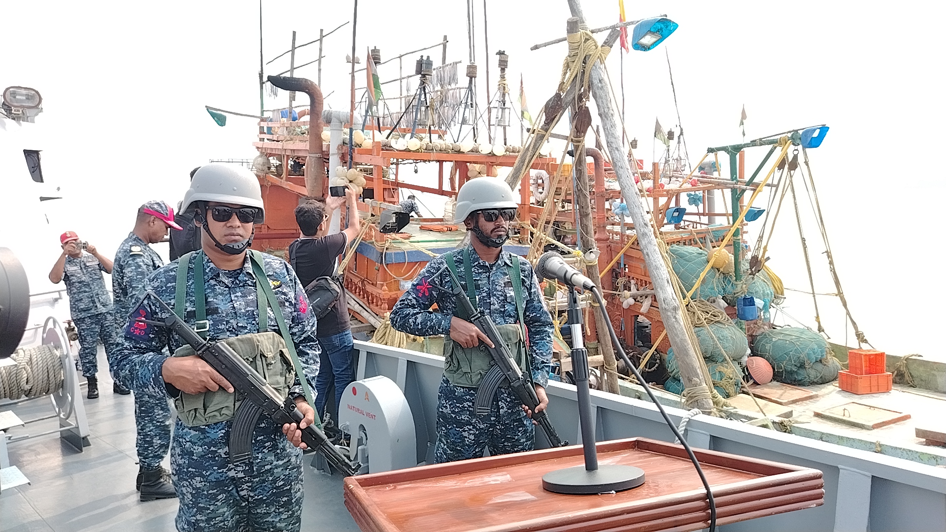 বাংলাদেশে মা ইলিশ সহ ৪৭৫ প্রজাতির মাছের প্রজনন নিশ্চিতে ২২ দিনের মৎস্য অবরোধ চলাকালে বাংলাদেশের জলসীমায় প্রবেশ করে মাছ শিকারের