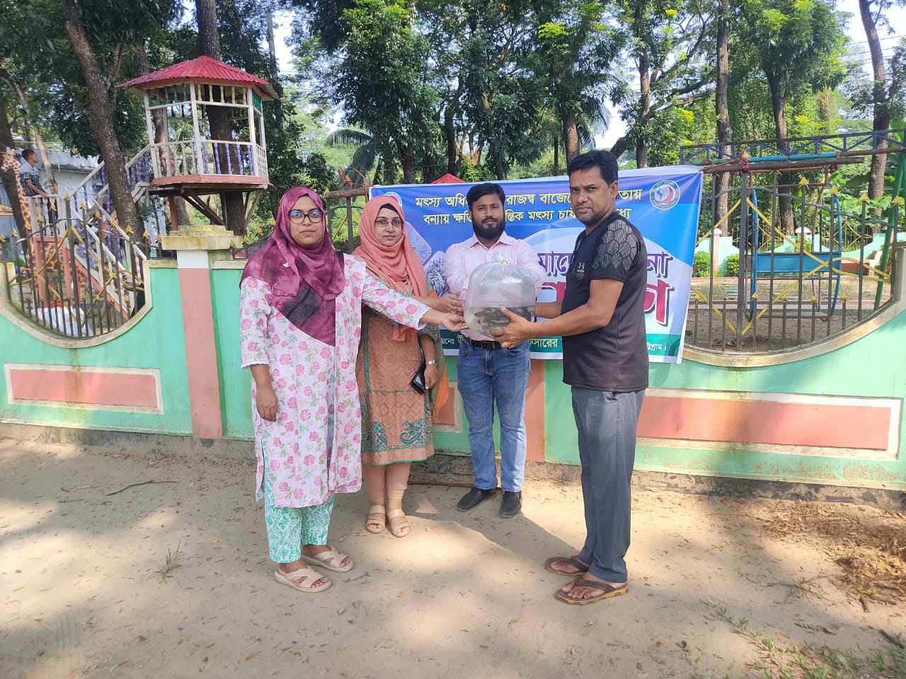 চট্টগ্রামের সাতকানিয়ায় সাম্প্রতিক সময়ের অতিবৃষ্টি ও বন্যায় ক্ষতিগ্রস্ত ৪১ জন প্রান্তিক মৎস্য চাষীদের মাঝে ৩৭৫ কেজি কার্প জাতীয় মাছের পোনা