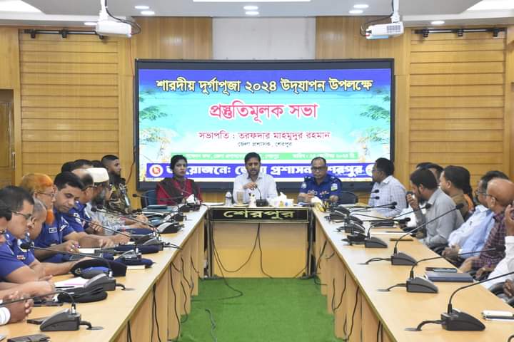 শেরপুরে আসন্ন শারদীয় দুর্গাপূজা উদযাপন উপলক্ষে প্রস্তুতিমূলক সভা অনুষ্ঠিত