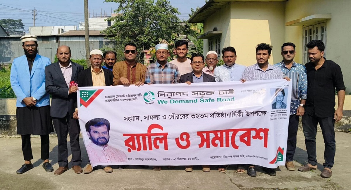 নিরাপদ সড়ক চাই এর সংগ্রাম, সাফল্য ও গৌরবের ৩২ তম প্রতিষ্ঠাবার্ষিকী উপলক্ষে দাউদকান্দি উপজেলা শাখার আয়োজনে র্যালি ও সমাবেশ অনুষ্ঠিত
