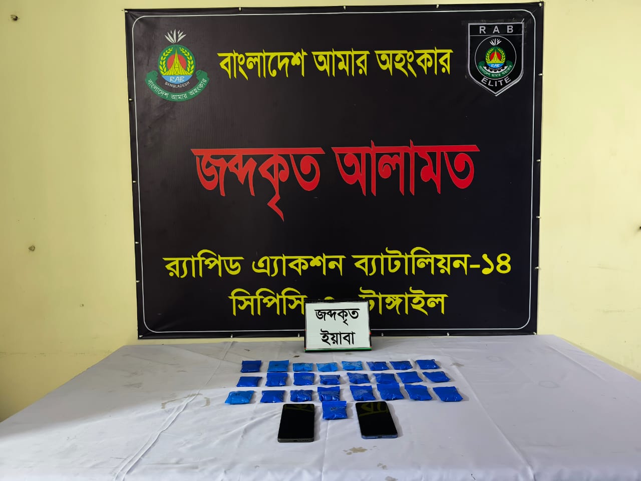 টাঙ্গাইলে পাঁচ হাজার ২৮ পিস ইয়াবা ও ৬৬ টি বোতল ফেন্সিডিলসহ দুই মাদক কারবারিকে গ্রেপ্তার করেছে র্যাব। ঢাকা-টাঙ্গাইল-যমুনা সেতু মহাসড়কের