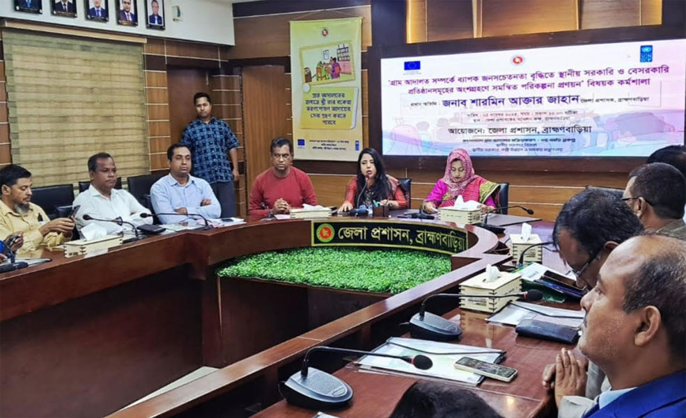 ব্রাহ্মণবাড়িয়ায় গ্রাম আদলাত সম্পর্কে ব্যাপক জনসচেতনতা বাড়াতে স্থানীয় সরকারি ও বেসরকারি প্রতিষ্ঠান সমূহের অংশগ্রহণে সমন্বিত পরিকল্পনা প্রণয়নবিষয়ক কর্মশালায় জানা গেছে,