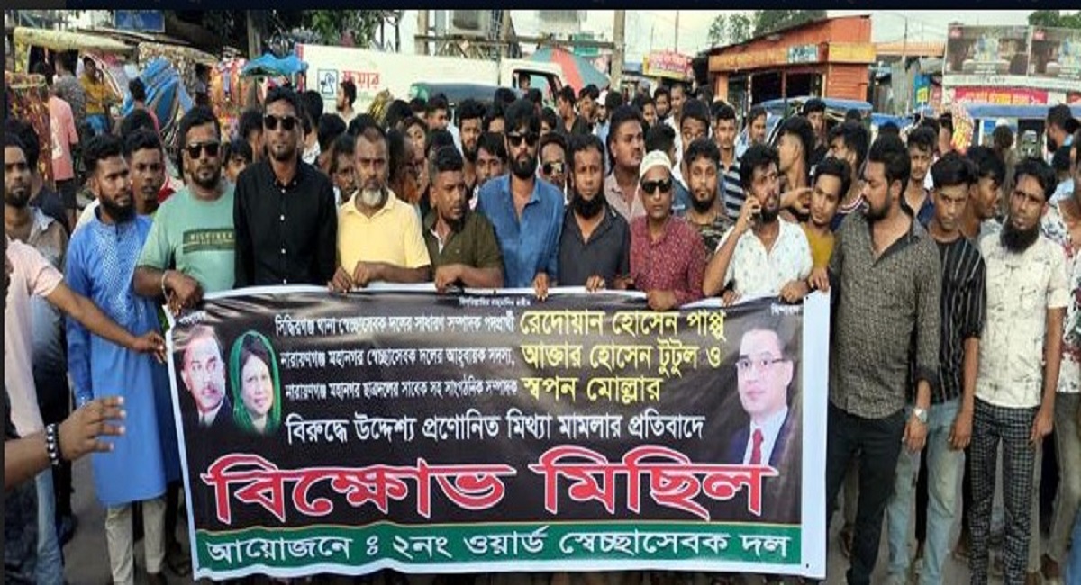 সিদ্ধিরগঞ্জে বিএনপির অঙ্গসংগঠনের নেতাকর্মীদের নামে হত্যা মামলা স্বেচ্ছাসেবক দলের প্রতিবাদ বিক্ষোভ