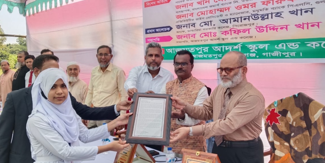 গাজীপুরের কালীগঞ্জে আজমতপুর আদর্শ স্কুল অ্যান্ড কলেজে অনুষ্ঠিত হয়েছে অভিভাবক সমাবেশ ও কৃতী শিক্ষার্থীদের সংবর্ধনা অনুষ্ঠান অনুষ্ঠিত হয়েছে। শনিবার (১৫