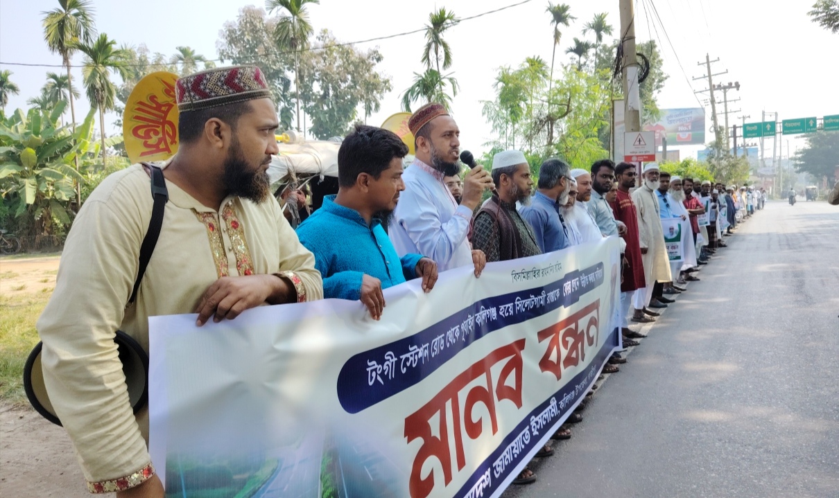 টংগী–কালীগঞ্জ–ঘোড়াশাল আঞ্চলিক সড়ক ফোর লেনের দাবিতে কালীগঞ্জে মানববন্ধন
