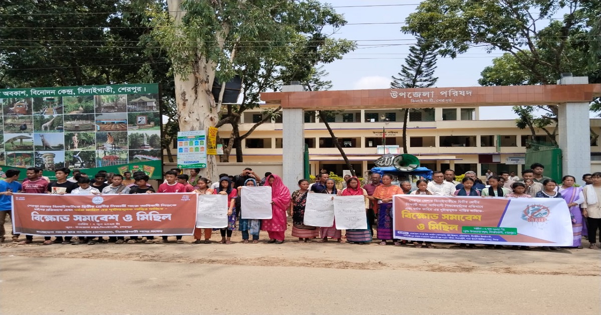 শেরপুরের ঝিনাইগাতীতে দ্বিতীয় শ্রেণীর আদিবাসী শিক্ষার্থী ধর্ষণের প্রতিবাদে এবং ধর্ষক ফাহিম এর দৃষ্টান্তমূলক শাস্তির দাবীতে বিক্ষােভ সমাবেশ ও মানববন্ধন অনুষ্ঠিত