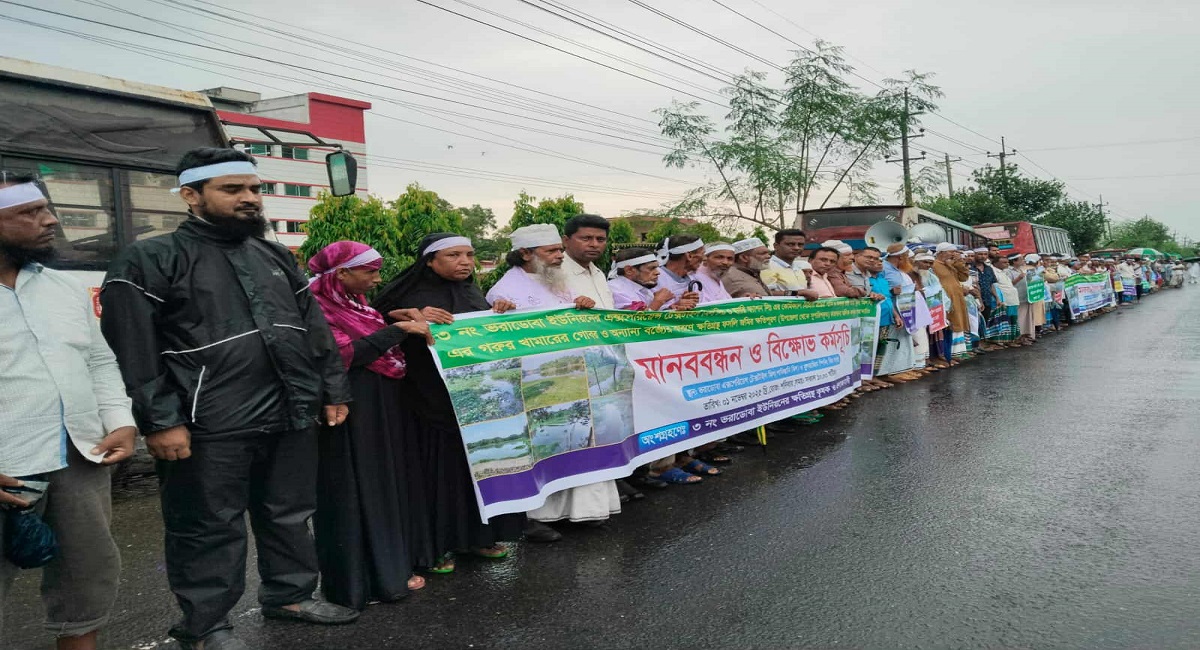 ভালুকায় কৃষকদের ক্ষতিপুরনের দাবীতে কাফনের কাপড় পড়ে বিক্ষোভ মিছিল