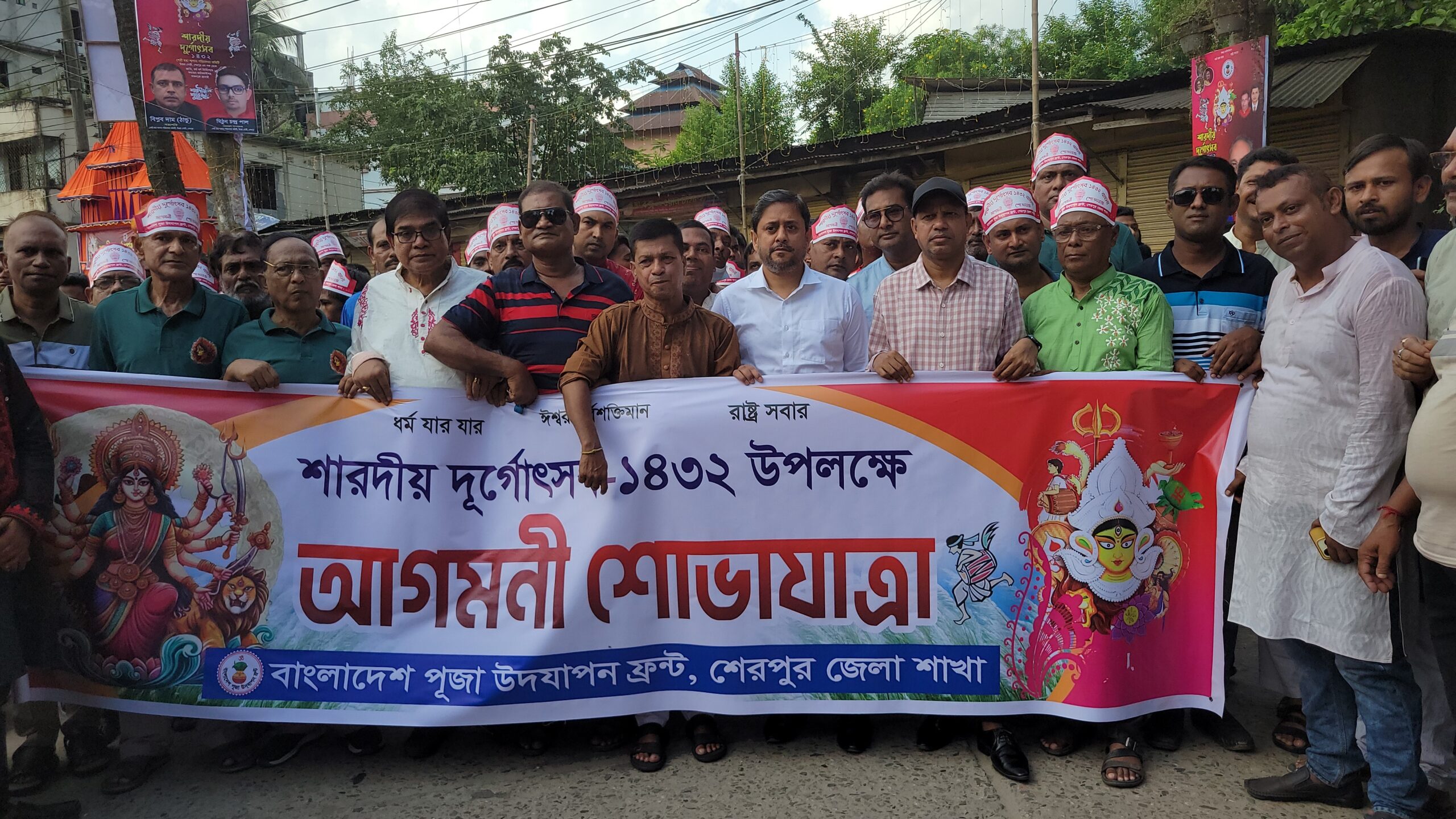 শেরপুরে শারদীয় দুর্গোৎসব উপলক্ষ্যে বর্ণাঢ্য আগমনী শোভাযাত্রা অনুষ্ঠিত!