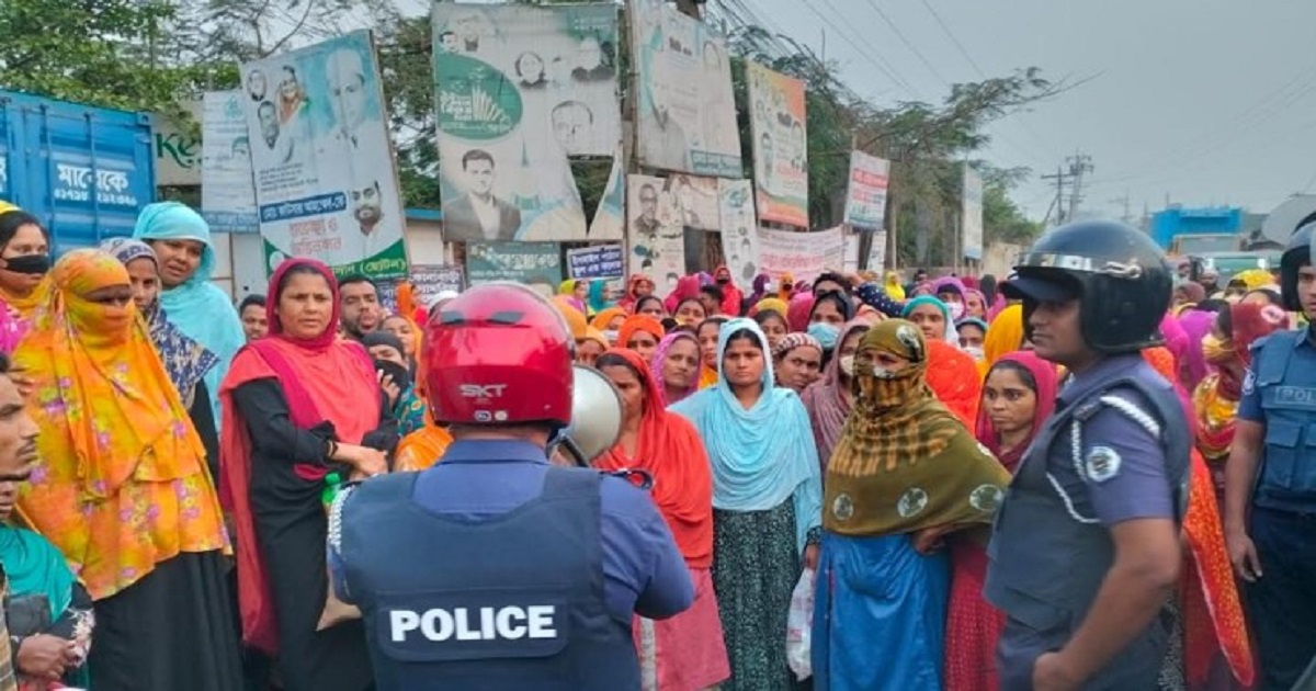 গাজীপুরে বকেয়া বেতনের দাবিতে শ্রমিকদের বিক্ষোভ