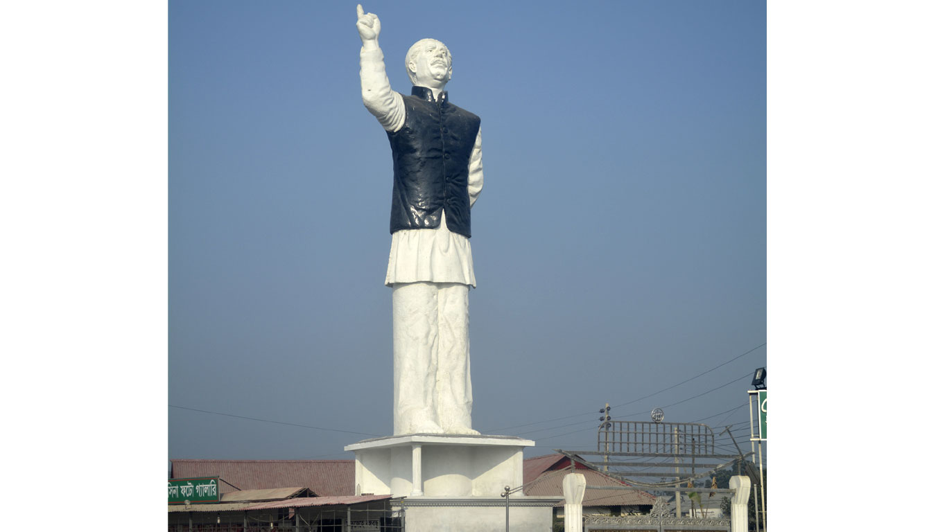৭মার্চের ভাষণের আদলে গৌরীপুরে বঙ্গবন্ধুর সর্বোচ্চ ভাস্কর্য