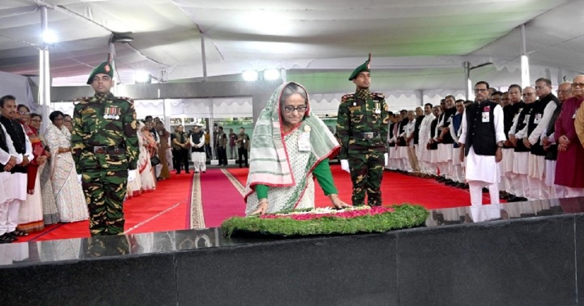 বঙ্গবন্ধুর প্রতিকৃতিতে প্রধানমন্ত্রীর শ্রদ্ধা