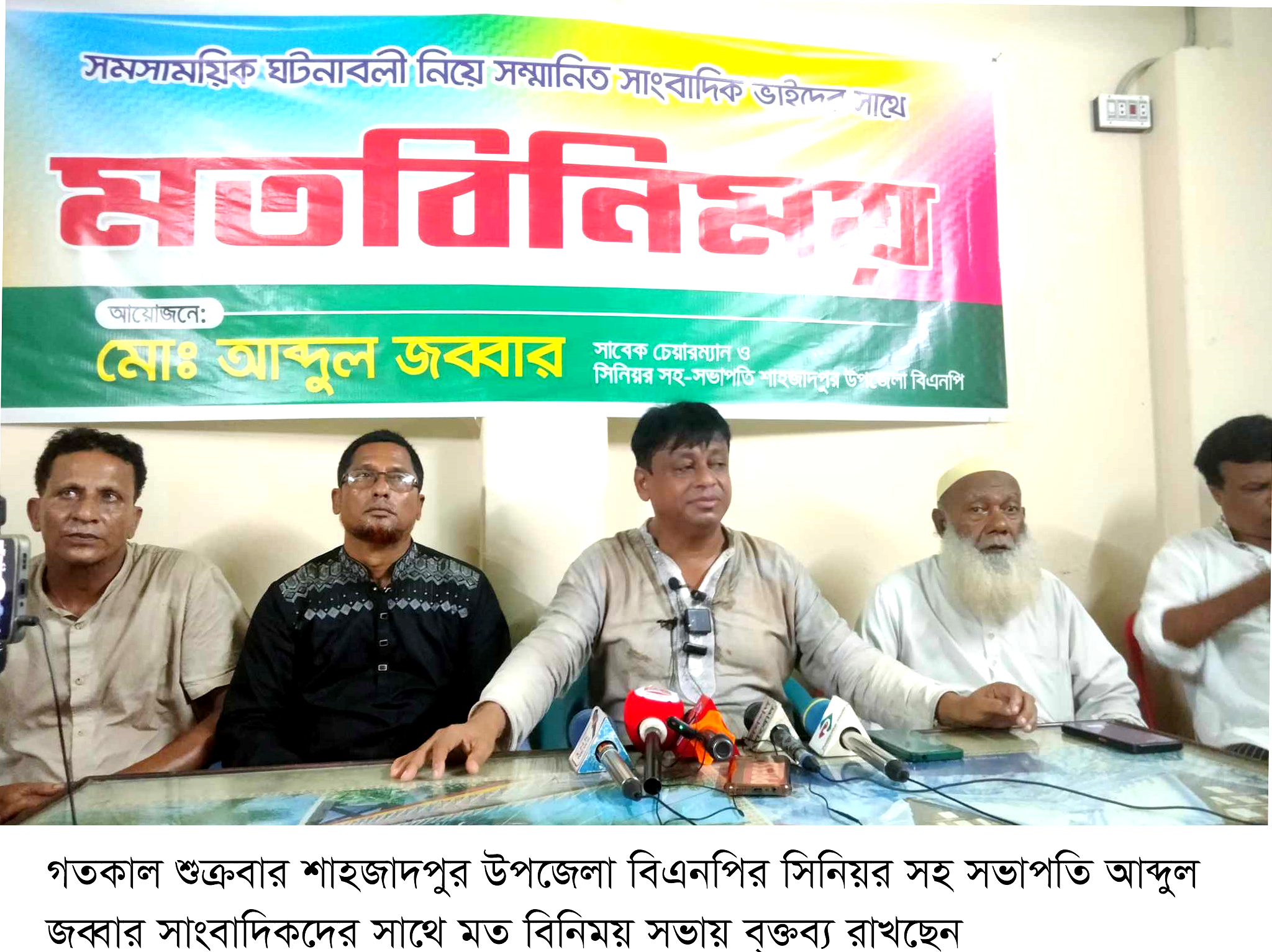 শাহজাদপুর উপজেলা বিএনপির সিনিয়র সহ-সভাপতি ও সাবেক শ্রেষ্ঠ চেয়ারম্যান আব্দুল জব্বার এবং ইউনিয়ন বিএনপি নেতৃবৃন্দের সাথে শাহজাদপুর উপজেলা সকল কর্মরত