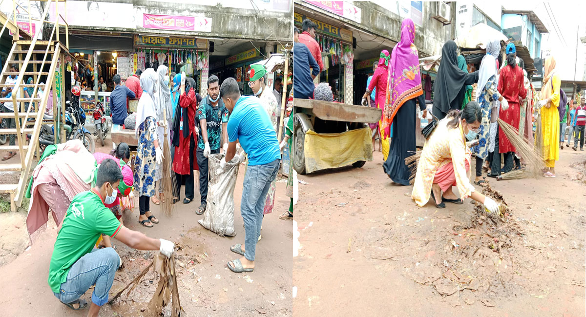 হাতীবান্ধায় সড়ক পরিস্কারে নেমেছে শিক্ষার্থীরা