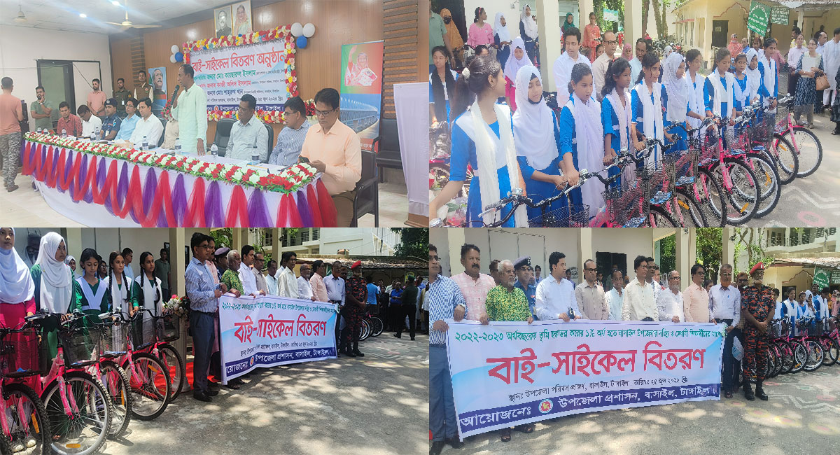 টাঙ্গাইলের বাসাইলে মাধ্যমিক বিদ্যালয়ের শিক্ষার্থীদের মাঝে বাইসাইকেল বিতরণ করা হয়েছে। মঙ্গলবার দুপুরে উপজেলা পরিষদ হলরুমে উপজেলার ৬টি ইউনিয়নের মাধ্যমিক বিদ্যালয়