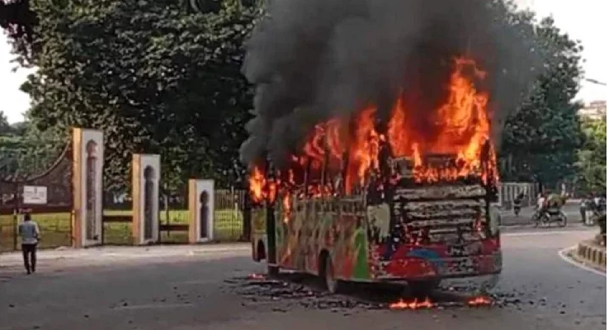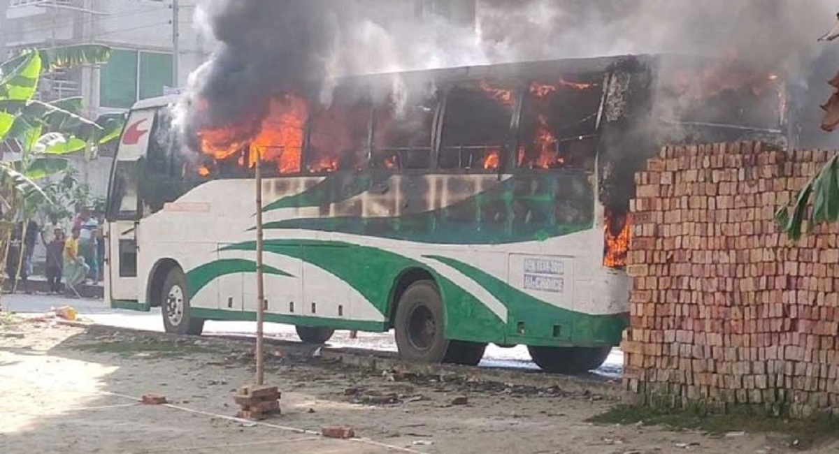 গাজীপুরে দিনদুপুরে বাসে আগুন