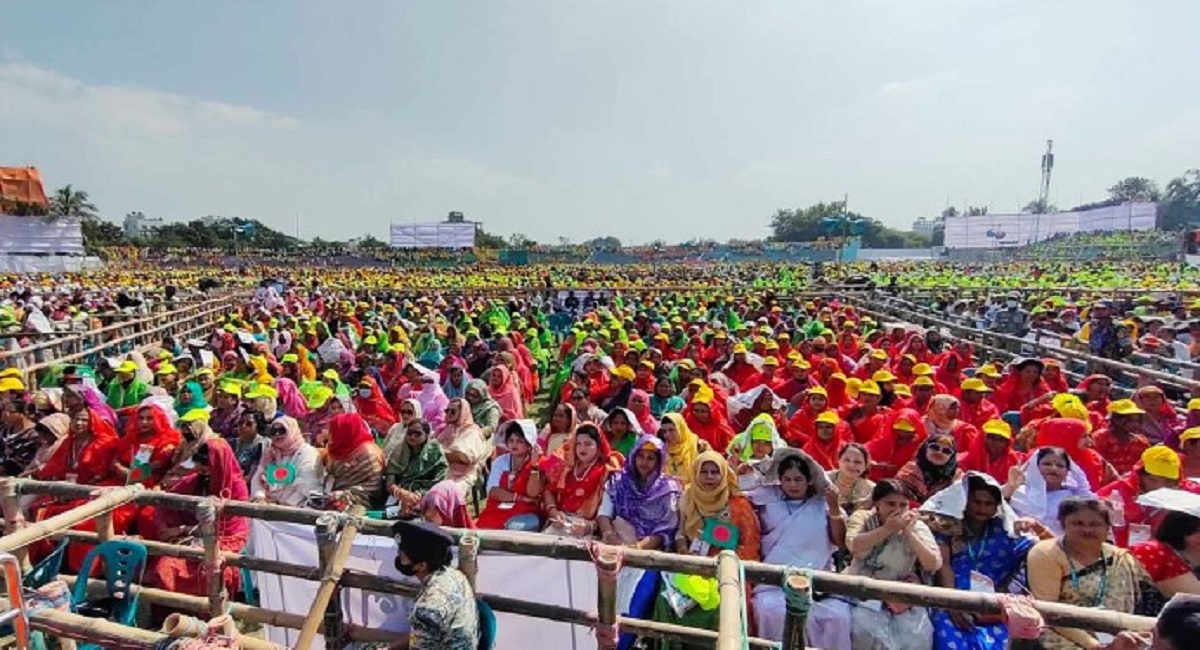 প্রধানমন্ত্রীর জনসভাস্থলে নেতা-কর্মীদের ঢল