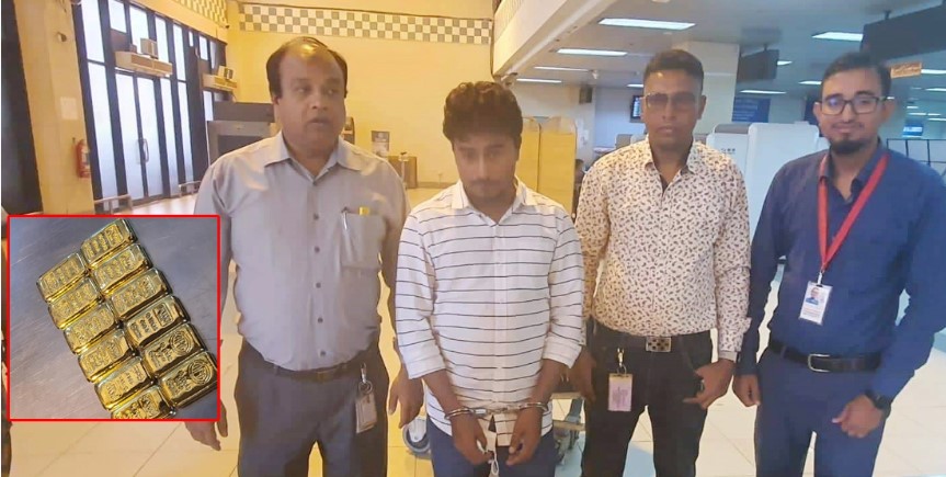 চট্টগ্রামের শাহ আমানত আন্তর্জাতিক বিমানবন্দর থেকে ১ কেজি ৩৯৮ গ্রাম ওজনের ১২টি স্বর্ণের বারসহ মুহাম্মদ মিজান উদ্দিন নামে এক যাত্রীকে