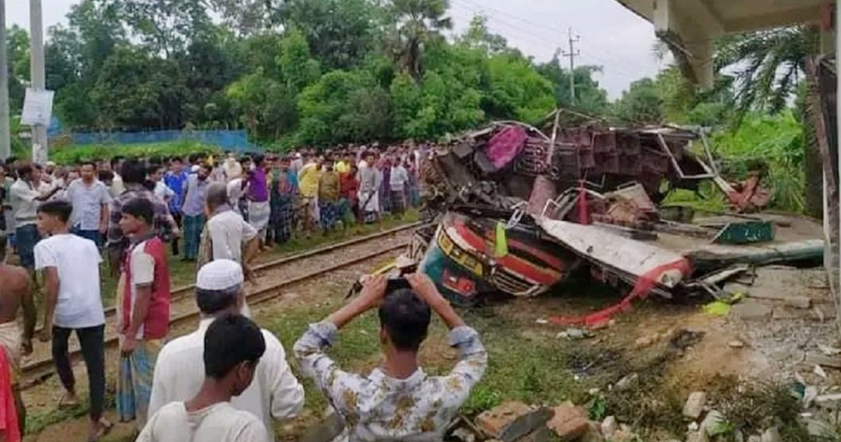 বাসে ট্রেনের ধাক্কায় নিহত বেড়ে ৪, আহত ১৫