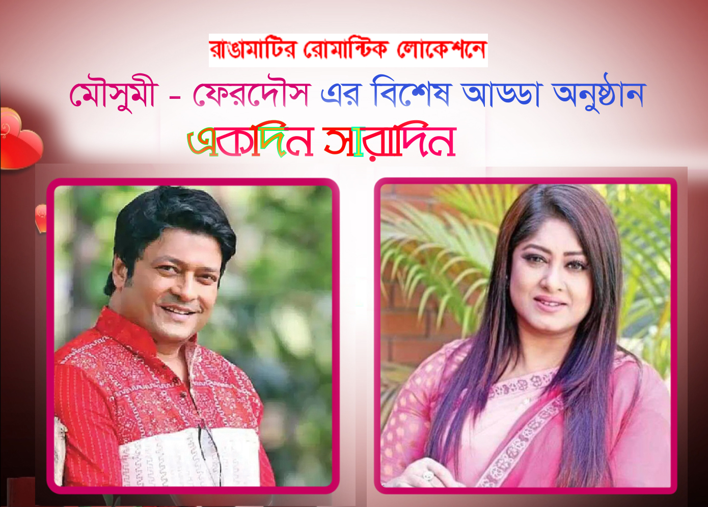 ভালোবাসা দিবস উপলক্ষে জনপ্রিয় নায়ক ফেরদৌস ও মৌসুমীর পঁচিশ বছরের ভালোবাসার অজানা গল্প প্রকাশ করবে চ্যানেল আই। আবদুর রহমান এর